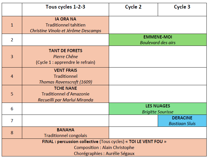 Pour donner encore plus de relief aux Rencontres « Ecoles qui chantent 2026 », des chorégraphies proposées par Aurélie Ségaux accompagnent 6 chants :